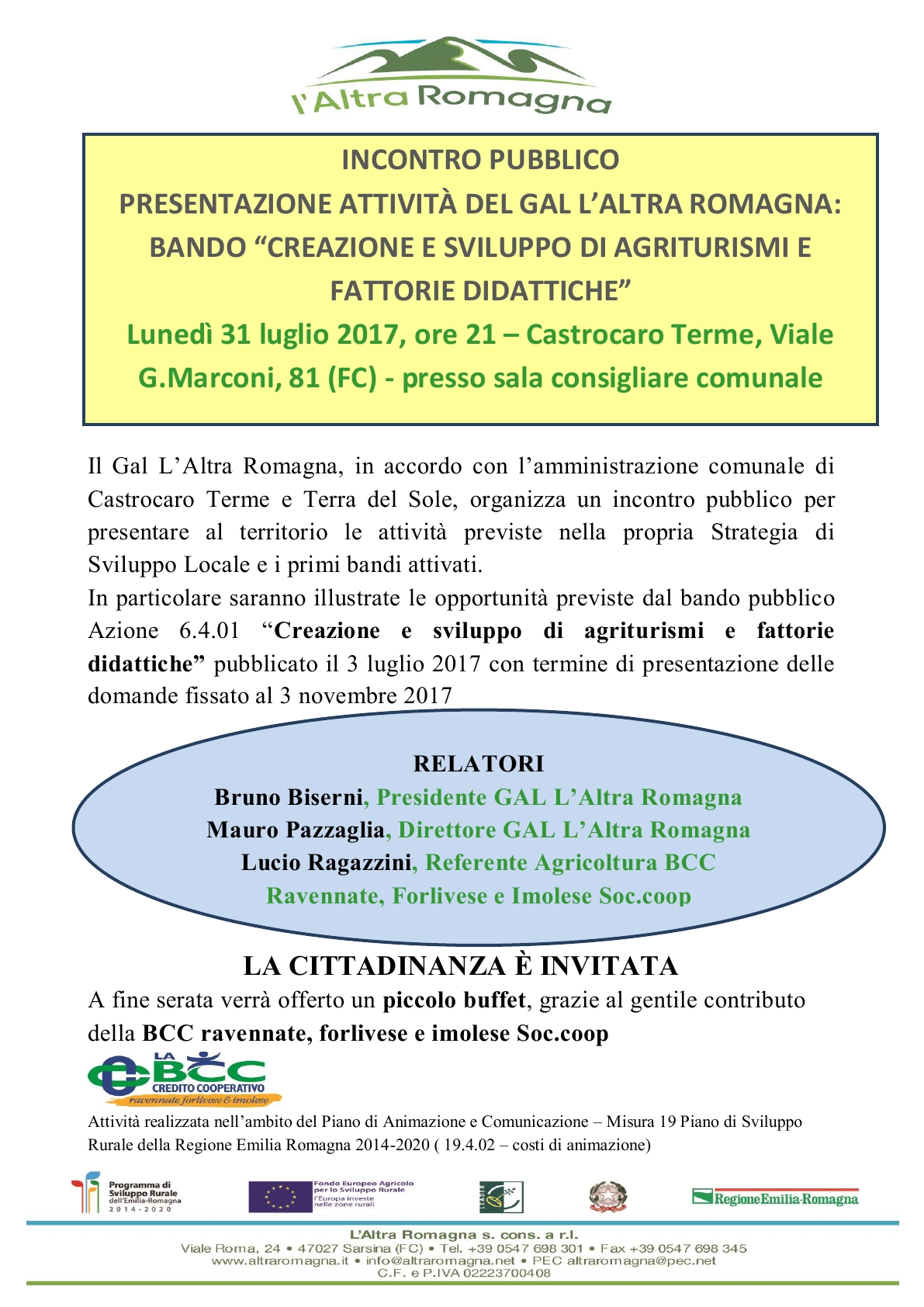 Save the date: Incontro pubblico del 31 luglio 2017 a Castrocaro Terme – Presentazione attività e bandi aperti