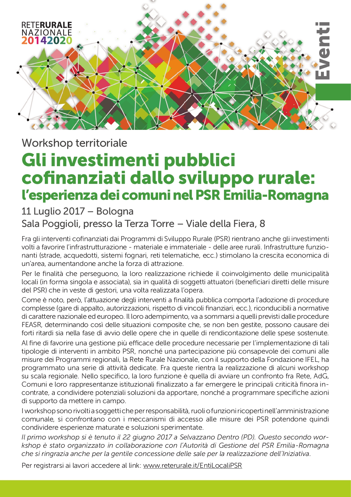 Sarà il Presidente Bruno Biserni a rappresentare l’esperienza del GAL dell’Emilia Romagna all’interno del workshop territoriale “Gli investimenti pubblici