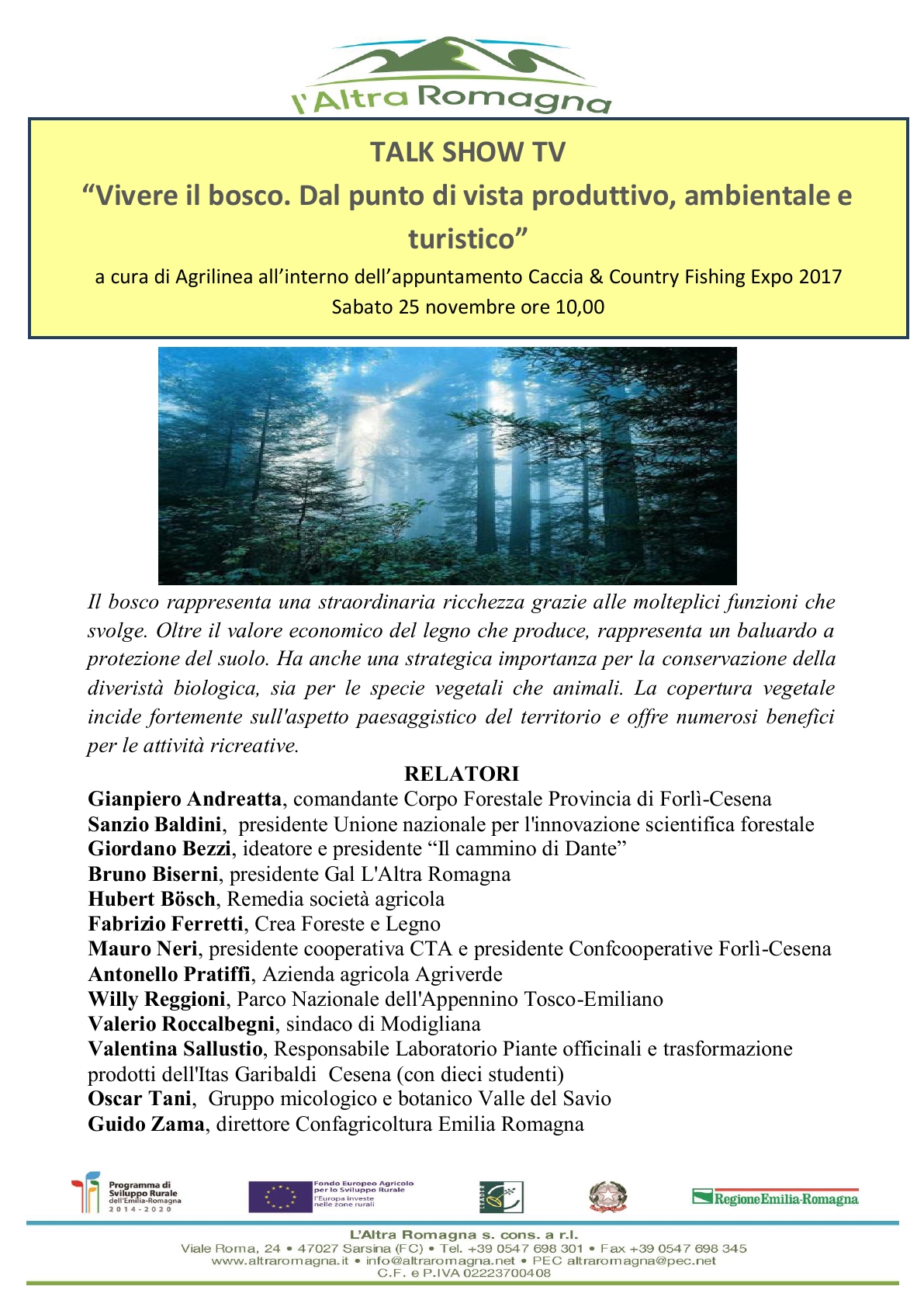 Il Presidente Bruno Biserni protagonista al TALK SHOW TV “Vivere il bosco. Dal punto di vista produttivo, ambientale e turistico”a cura di Agrilinea all’interno dell’appunt