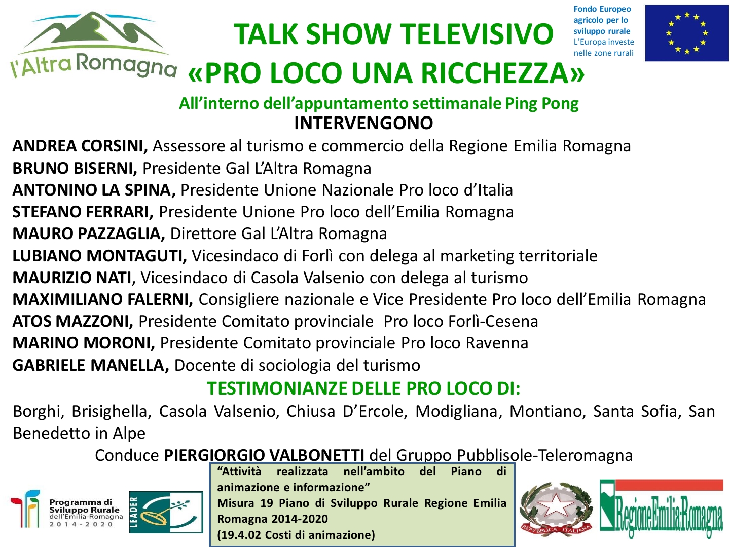 Seguiteci numerosi al talk show televisivo “Pro Loco:una ricchezza”