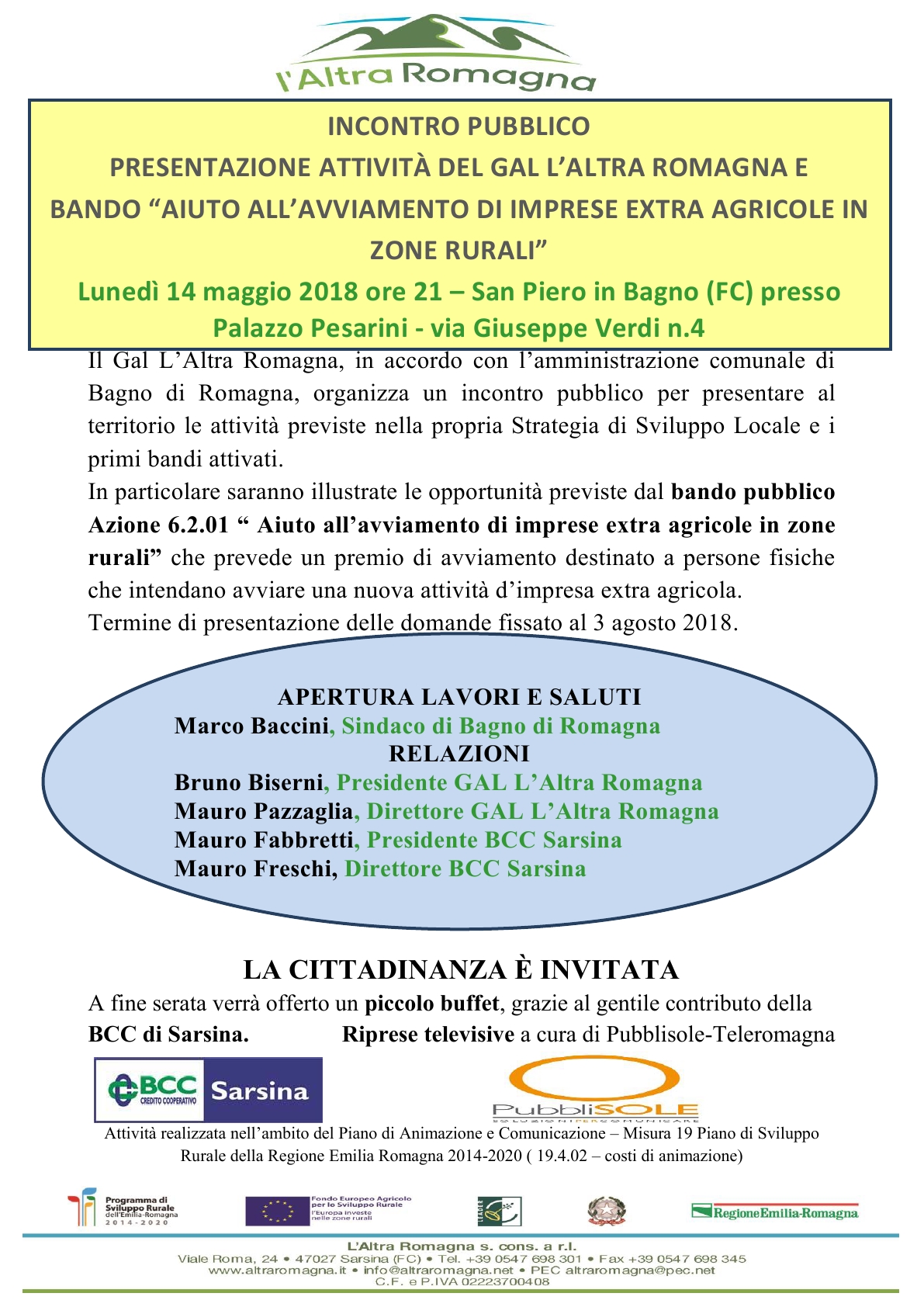 SAVE THE DATE: Incontro pubblico del 14 maggio 2018 a San Piero in Bagno – Presentazione BANDO PER IMPRESE EXTRA AGRICOLE